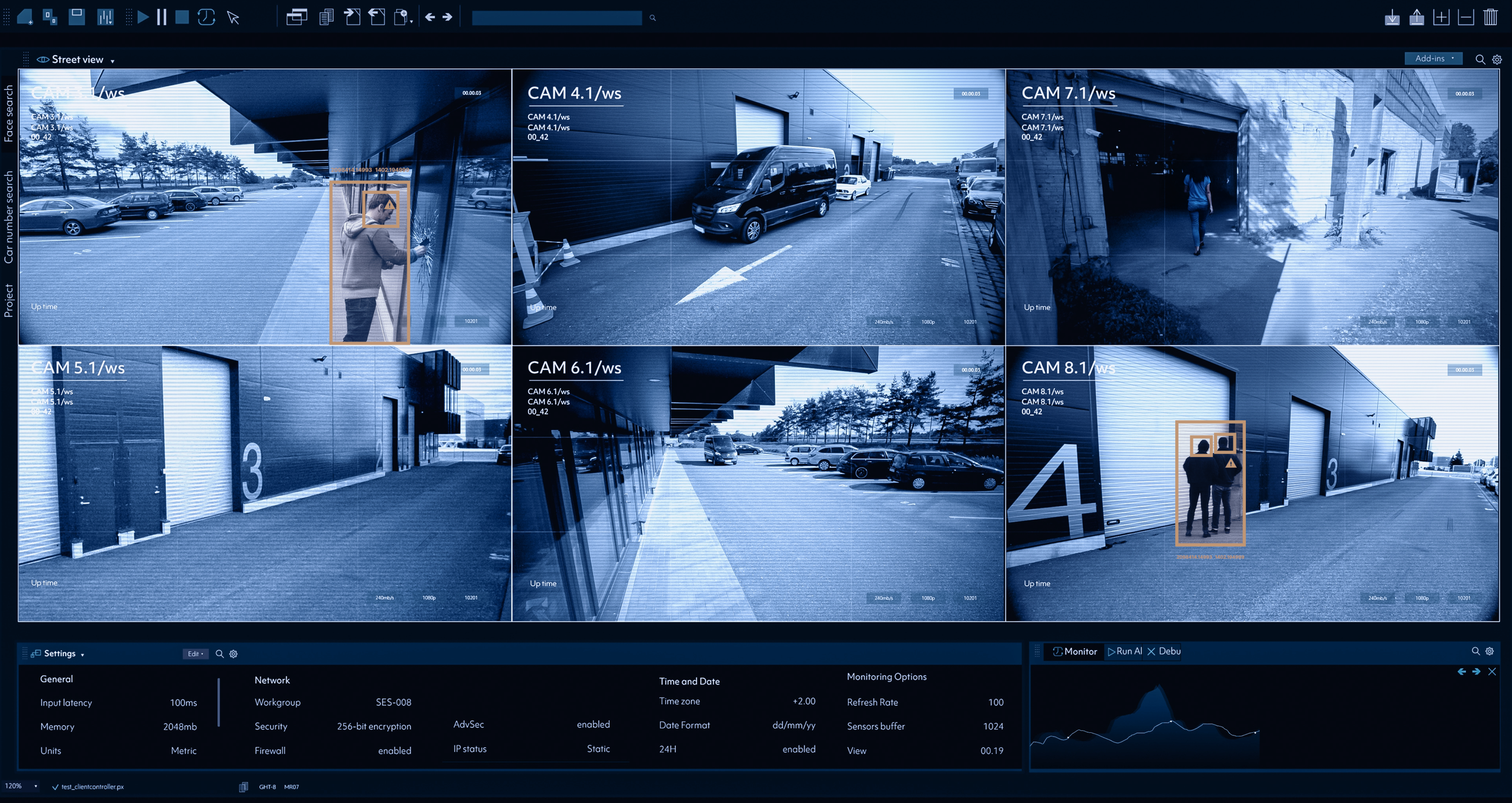 Blue Eye monitors interior cameras, focusing on key entry points like doors and windows.